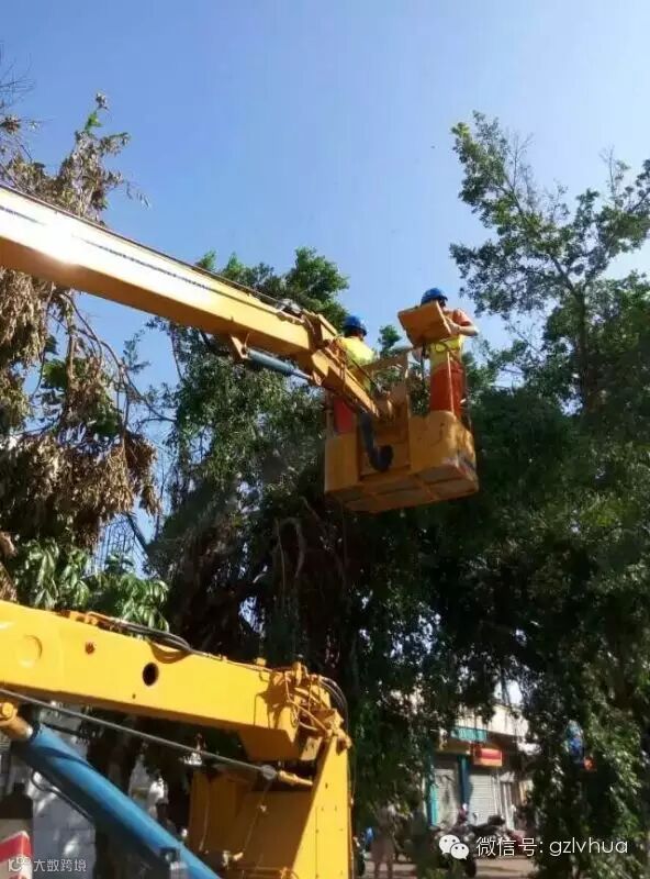 10月6日,应广东省人民政府要求,广州市政府和广州市林业和园林局直接指令广州市绿化公司紧急组织救援物资、设备和人力资源,迅速组建起一支专业的绿化抢险救援队伍赴湛江协助抢险!为不影响广州市区内的正常绿化抢险工作,公司采取了分批出发、抽调骨干抢险队员、委派经验丰富的干部任组长、优先购配抢险物资等措施,令第一批救援队在10月6日晚上21点出发,第二批救援队在10月7日清晨6点出发。本次救援行动共派出抢险人员16人,14米高修车1台、20米高修车1台、面包车1台、油锯约12把。