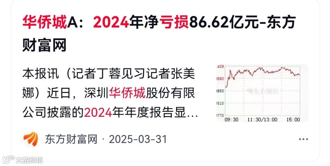 第六名:华侨城集团,2024年亏损86.62亿。它总部位于深圳,作为老牌房地产央企,2024年也是华侨城集团连续第三年亏损。