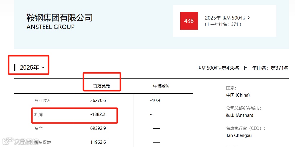 第五名:鞍钢集团,2024年亏损约99亿元。鞍钢是新中国最早建成的钢铁生产基地,被誉为“共和国钢铁工业的长子”“新中国钢铁工业的摇篮”。