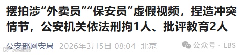近日,公安网安部门查明,网民刘某龙(男,30岁)、宿某睿(男,30岁)、李某(男,30岁)等人为博取流量、吸引眼球、售卖课程、“起号”牟利,打着退役军人旗号,捏造虚假人设,摆拍与“外卖员”“保安员”等交涉的虚假视频,通过故意设计冲突情节等方式吸粉引流,误导不明真相网民,制造对立情绪,透支公众信任,消费公众善意,污染网络生态。