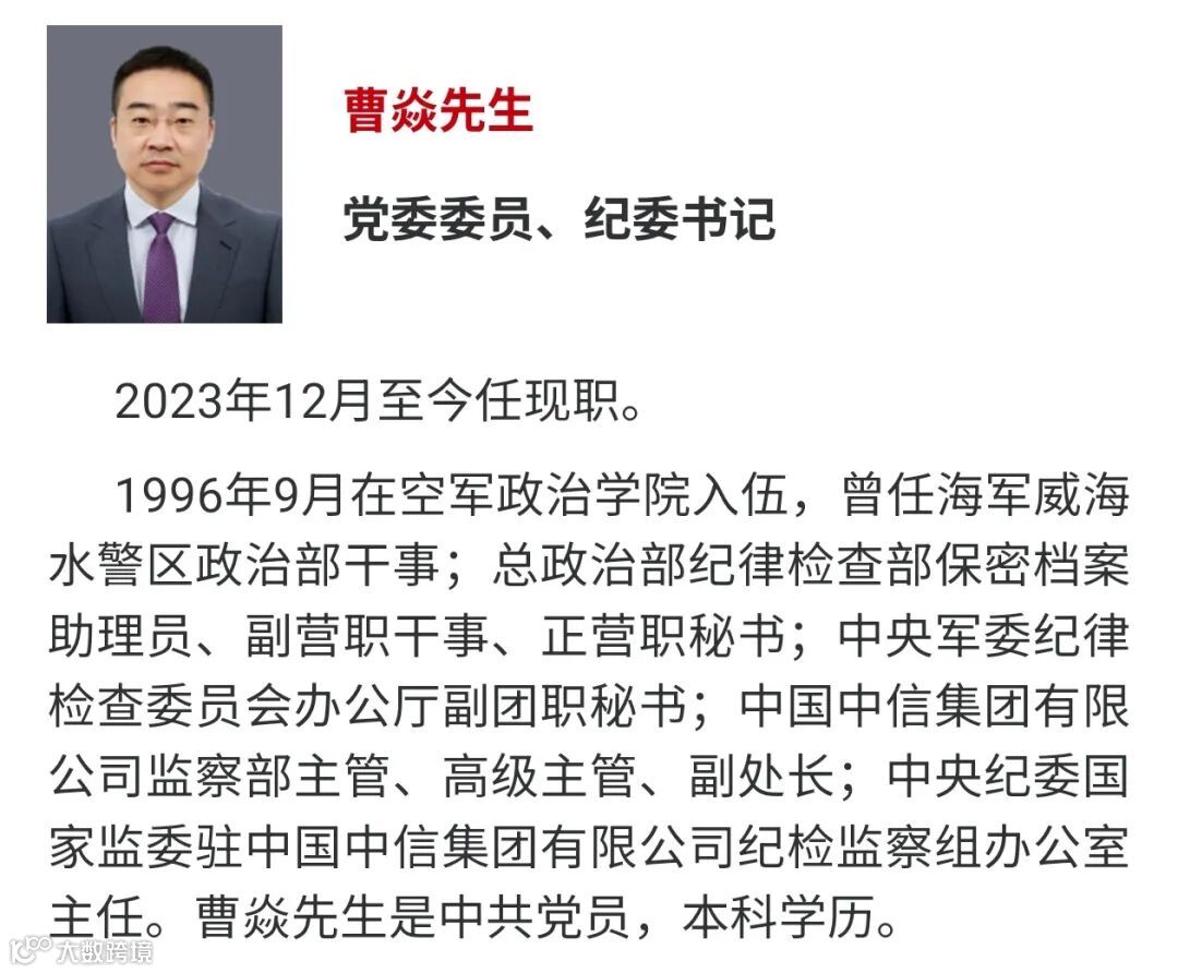 小警快讯 | 中国中信金融资产(原中国华融资产)领导班子