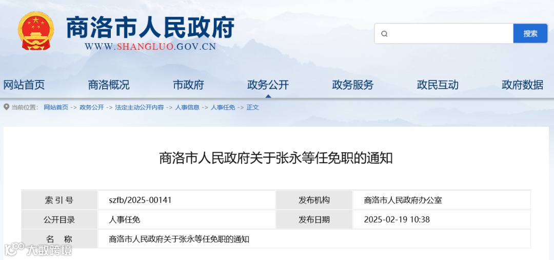 2月19日,商洛市人民政府发布一批任免职的通知,其中包括: