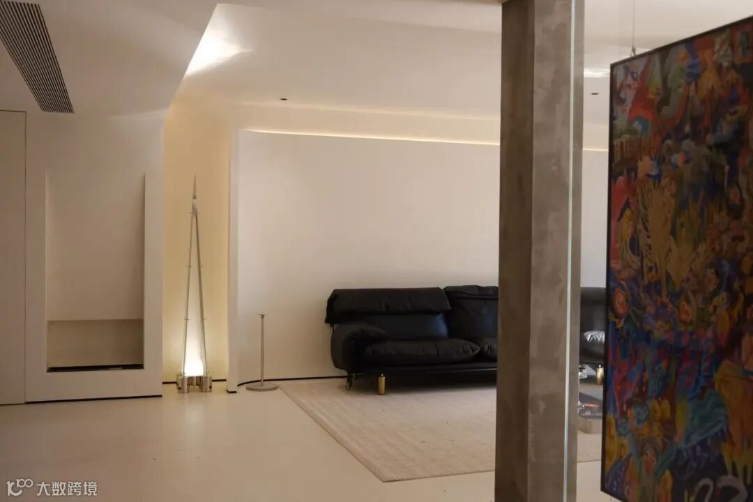 推开入户门,视线先被一幅色彩浓烈的艺术画作抓住,而更让我驻足的是它背后的墙面。玛勒莫以意大利阿尔卑斯山天然矿物为基底,手工分层涂抹的工艺造就了细腻陶土肌理,哑光质感像一块温润的画布,在柔和的嵌入式灯光下泛着均匀微光,没有传统涂料的反光刺眼,也无壁纸的刻板纹路,仅以纯粹米白,便稳稳托住艺术装置的色彩张力。指尖划过墙面,能触到肌理的自然起伏却无毛刺,玉石般的温凉柔润,是玛勒莫独有的触感表达,而法国 A + 与中国 3C 的双重环保认证,更让这份质感从源头便藏着安心。