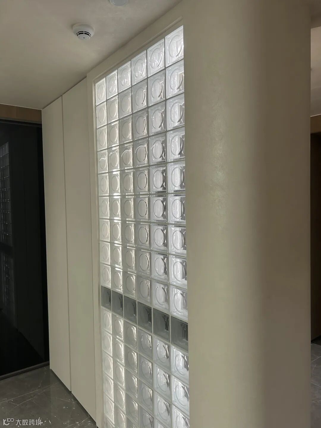 推开门的瞬间,便撞进一场通透与温润的双向奔赴。玻璃砖隔断携着轻盈的光影扑面而来,冷冽的通透感却被身旁的墙面稳稳承接——那是斯达丝绸赋予的米白色温柔,指尖抚过,丝滑细腻的触感毫无颗粒感,仿佛触碰到真丝织物的肌理。嵌入式筒灯的柔光漫过墙面,藏在肌理中的细碎珠光缓缓浮现,层次错落的光泽像揉碎了星光,悄悄消解了玻璃砖的冷硬,为入户玄关铺就了一层雅致的底色。站在这里,光影在通透与丝滑间流转,归家的第一步,便与仪式感撞了个满怀。