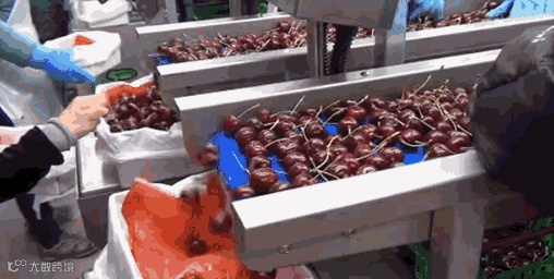 上午8点:采摘好的车厘子进入工厂进行分拣、清洗及包装