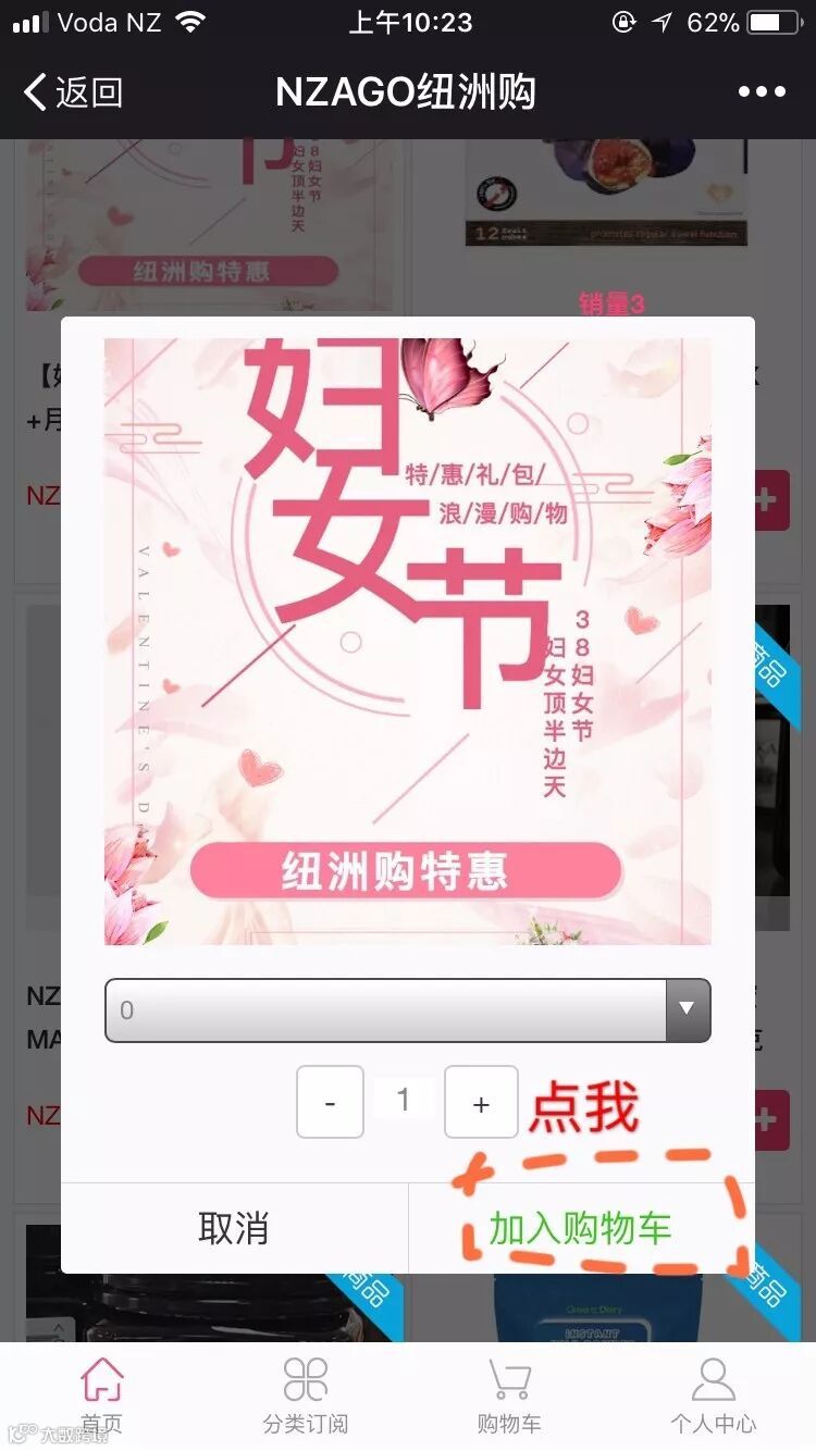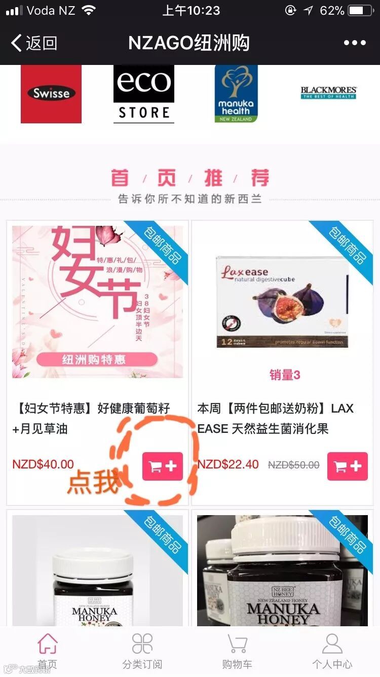 STEP 4 点击【妇女节特惠】好健康葡萄籽+月见草油 右下方购物车