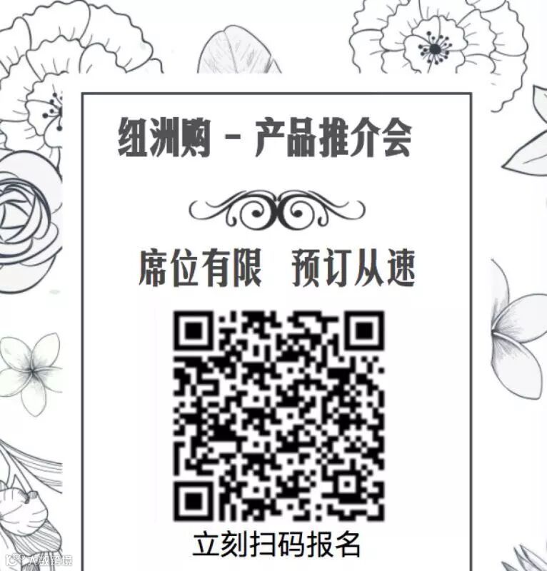 时下最热产品介绍会,代购经验分享,现场超值礼品赠送,预热2018全球代购热点产品,尽在3月16日纽洲购产品推介会,报名请扫描下方二维码填写信息,席位有限,预订从速!