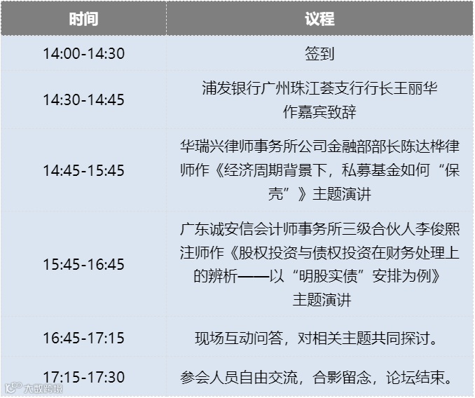 有鉴于此,华瑞兴法律实务论坛第57期沙龙年底将与大家共同交流探讨,经济周期背景下,私募基金如何“保壳”。同时针对股权投资与债权投资在财务处理上的辨析等问题,由华瑞兴律师事务所陈达桦律师和诚安信会计师事务所李俊熙注师作主题分享。欢迎您的参与!