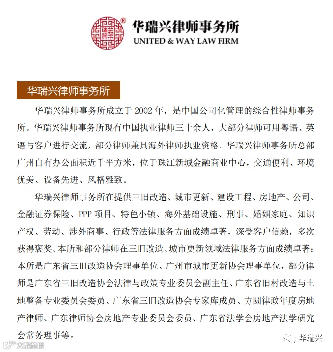 华瑞兴作为广州本地建设工程、房地产、PPP、城市更新专业公司化律所,在成立20年之际,在公司化律所发展领域积累了丰富的经验,欢迎大家多交流合作!