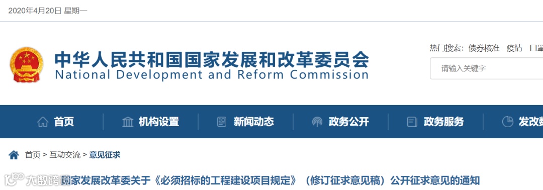 国家发展改革委关于《必须招标的工程建设项目规定》(修订征求意见稿)公开征求意见的通知