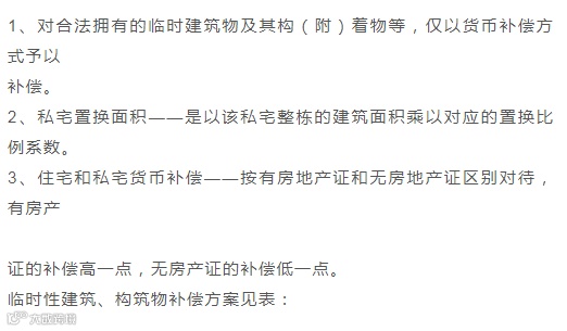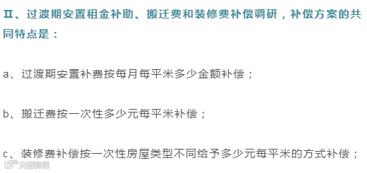 Ⅰ、永久性建筑和、临时性建筑及构筑物补偿调研;补偿方案一般是有共同特点的: