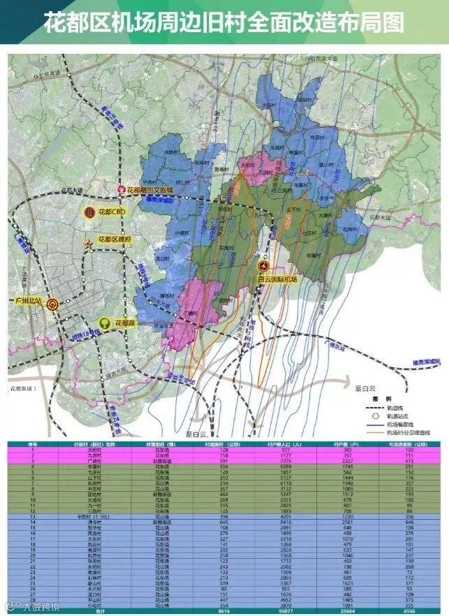 广塘村更新范围:花都区机场高速以西,广花公路两侧,用地面积384.94公顷,为全面改造项目。
