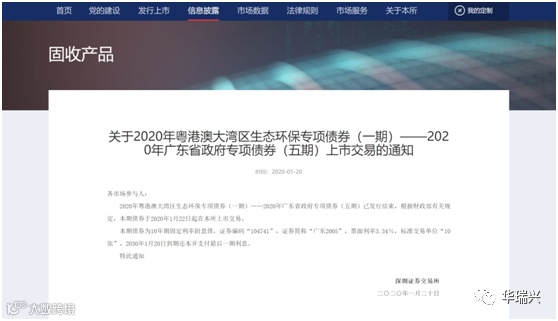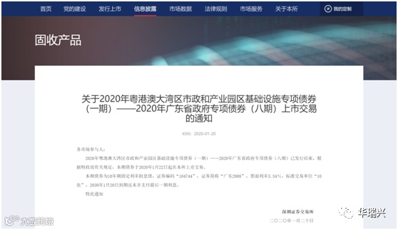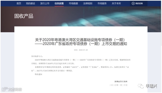 1月22日,2020年粤港澳大湾区交通基础设施专项债券(一期)、2020年粤港澳大湾区民生服务专项债券(一期)、2020年粤港澳大湾区生态环保专项债券(一期)、2020年粤港澳大湾区市政和产业园区基础设施专项债券(一期)均成功发行,债券期限分为7年期和10年期,票面利率分别为3.3%和3.34%。