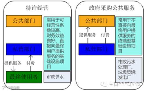 目前对行政诉讼的争议根源来自于上述词汇的泛化,从企业是否具有经营性入手,我们认为PPP在市政领域内分为特许经营和政府采购公共服务。
