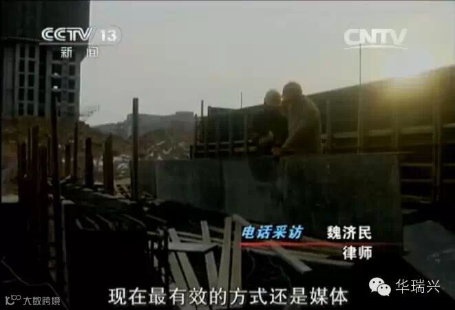 2015年1月24日周六22:15,中央电视台新闻频道《新闻周刊》播出各地政府拖欠工程款及民工讨薪的视点节目,华瑞兴律师事务所管委会主任魏济民律师作为资深法律专家,受邀参与采访并针对“民工讨薪”问题发表建议与看法。