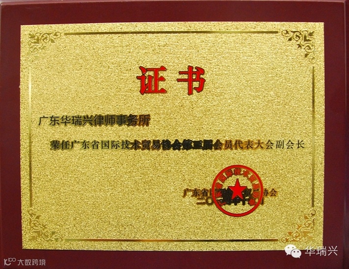 庆祝华瑞兴律师事务所荣任广东省国际技术贸易协会第三届会员代表大会副会长。华瑞兴将与广东省国际技术贸易协会达成战略性合作。