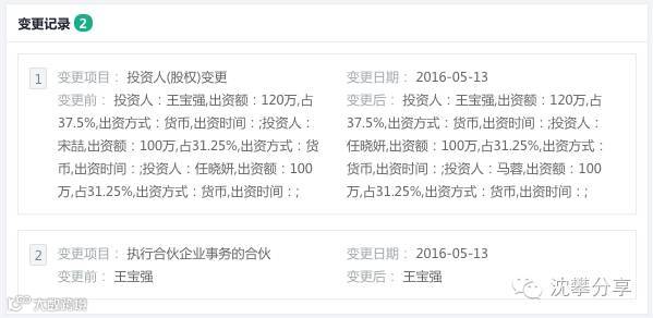 投资公司2016年5月13日变更了股东,2016年4月19日有限公司变更了股东,也就是说,先让投资公司进入有限公司,不显示山露水了吧,宋喆和马蓉都不知道后面的布局,各种字签完,然后回过来再变更投资公司股东。