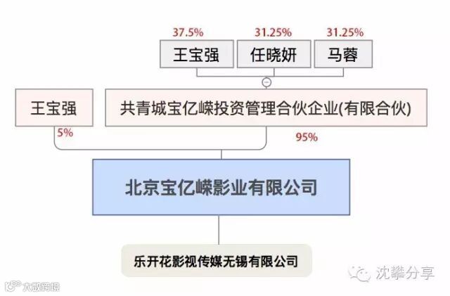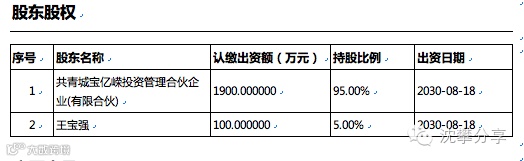 变更后:王宝强占股份5%,共青城宝亿嵘投资管理合伙企业占股95%。