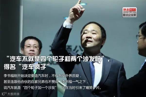 让人难以置信的是,他的汽车许可证来自四川德阳的一家监狱,该监狱下属有一家汽车厂,李书福注资取得了7%的股权。