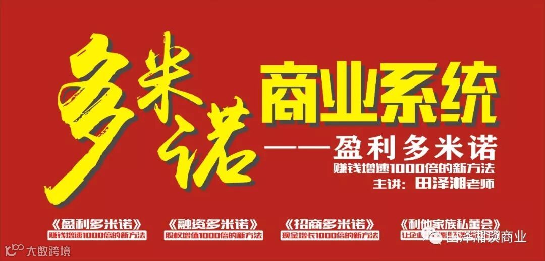 田泽湘老师凭借自己十几年的实战经验,练就了独到的慧眼和敏锐的市场察觉力,看破靠赚取产品差价盈利的传统商业模式在互联网时代下的弊端,并致力于新的商业模式的开发,不断摸索探索出适合新税法下——老板赚钱1000倍的增长秘诀。创办了《多米诺商业系统》致力于帮助帮助传统企业转型,已成功帮助5千家企业千倍增长。