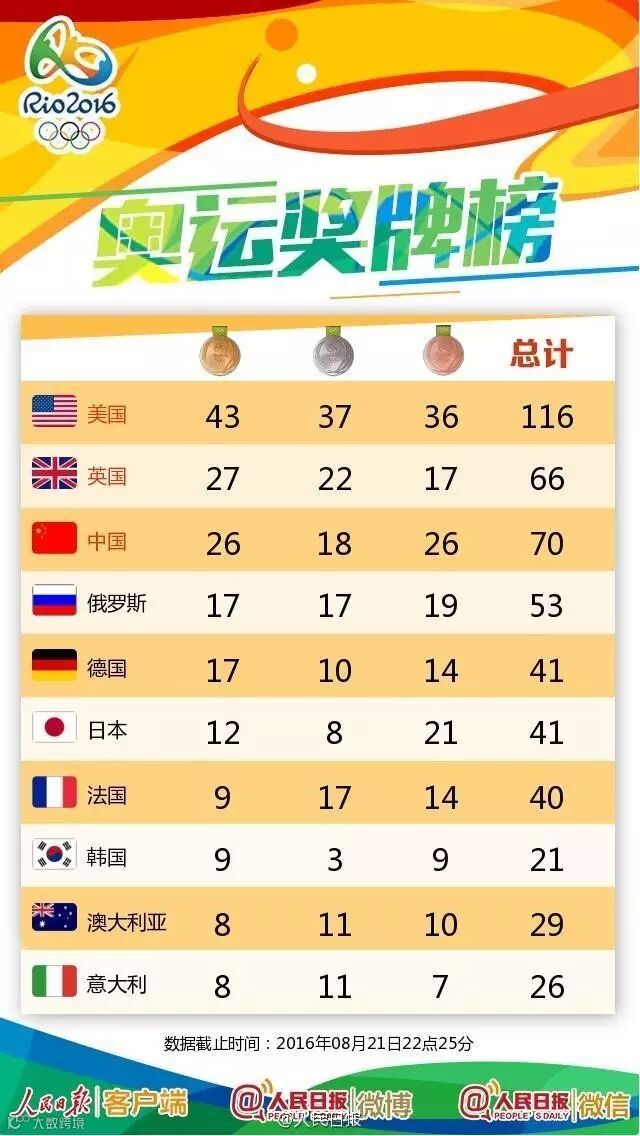 里约奥运会,中国以26金18银26铜收官,位居奖牌榜第三。闭幕式上,丁宁任中国军团旗手。