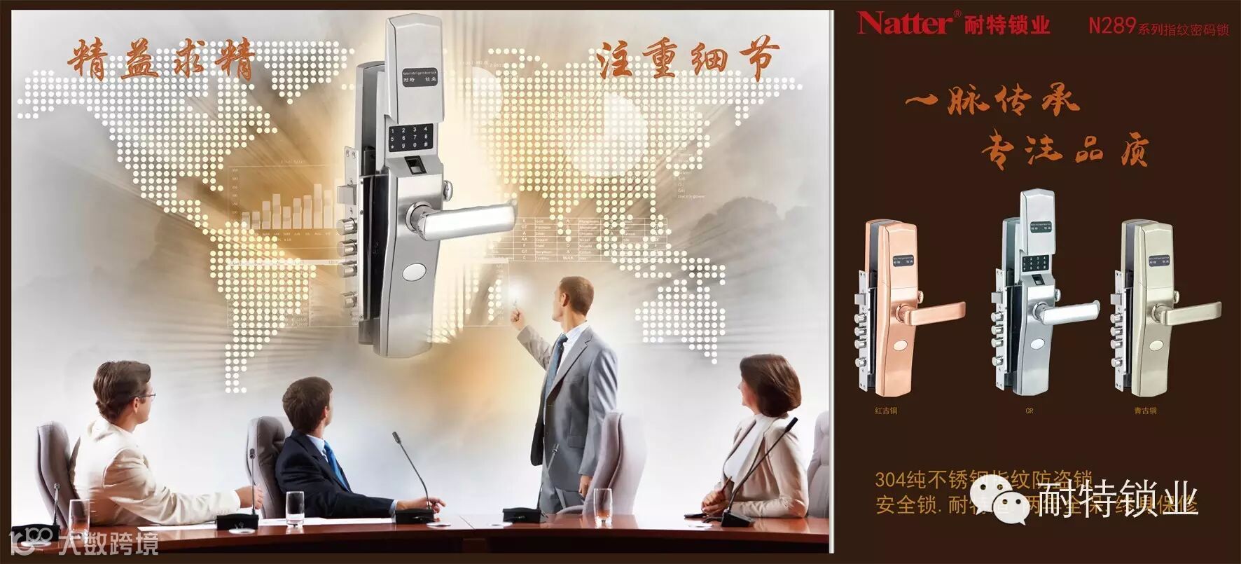 耐特锁业不知不觉已经走过十年,十年的风雨历程,十年的艰苦奋斗,我们专注、专一、专业做SUS304不锈钢指纹防盗锁,把不锈钢的优点发挥到淋漓尽致。得到锁具行业的认可,让顾客一提到不锈钢指纹防盗锁就会想起“耐特锁业”