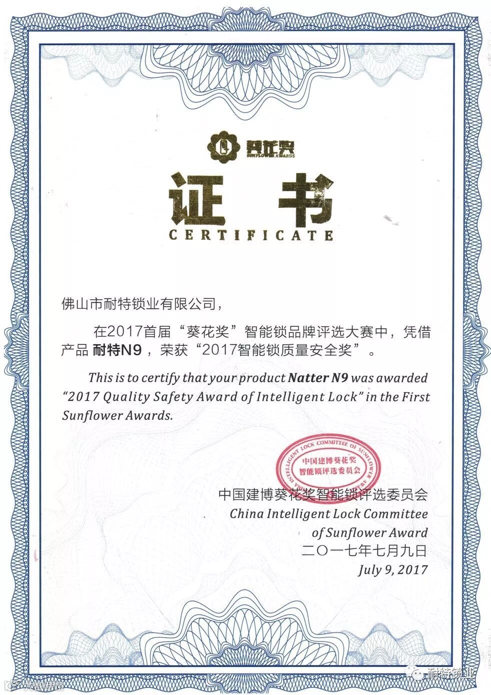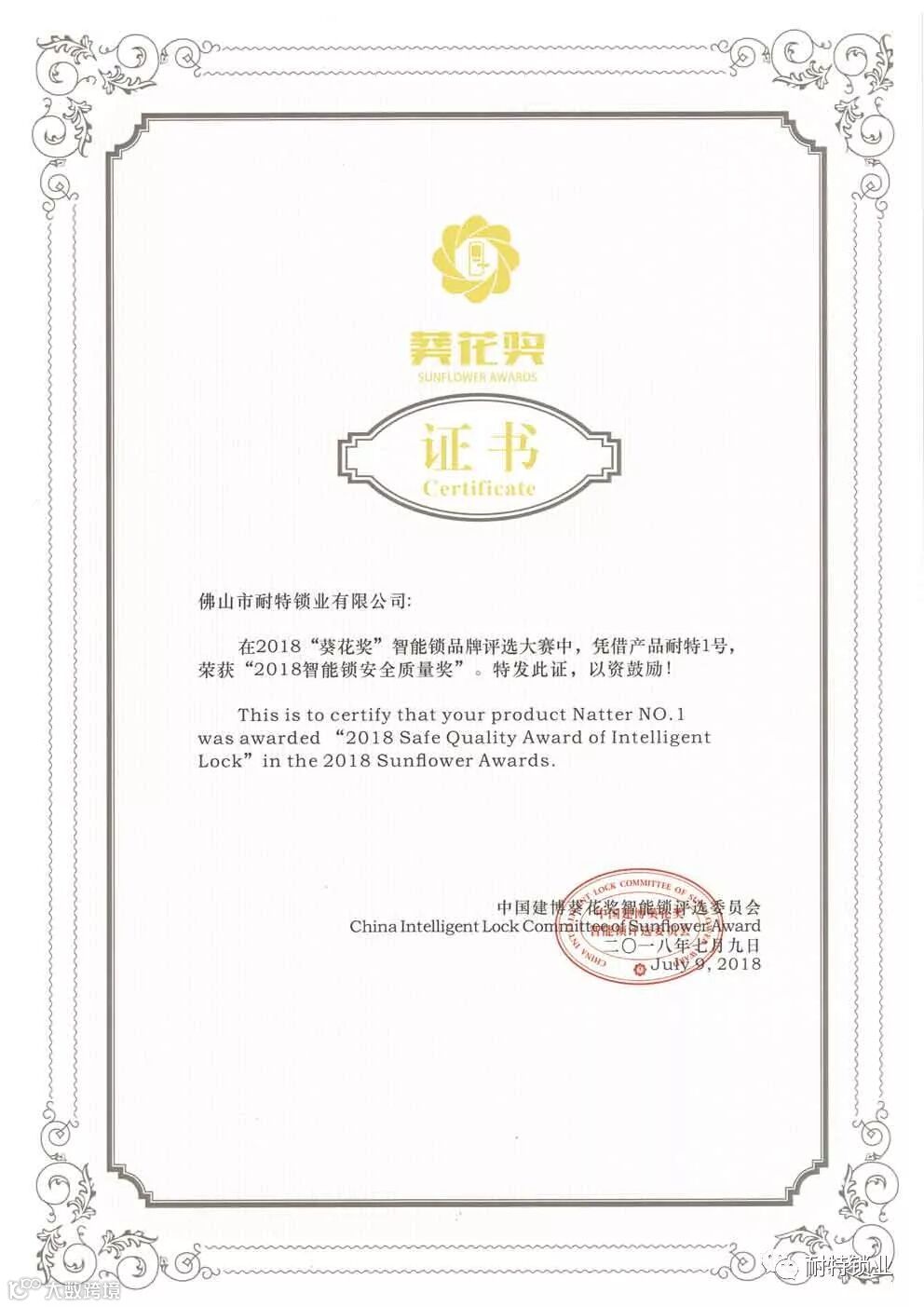 耐特公司13年专注、专心、专业、研发生产304不锈钢指纹锁。自公司成立以来,不断引进国内外先进设备,不断完善生产工艺、采用军事化管理模式,不断培养人才,为耐特指纹锁的质量安全打下了坚实的基础,耐特指纹锁在2017年、2018年“葵花奖”智能锁品牌评选中连续两年荣获智能锁“安全质量奖”。