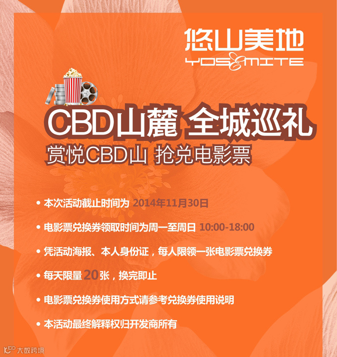 悠山美地“CBD山麓全城巡礼”上周末已经在龙华大润发和大浪商业中心盛大启幕啦!我们给小伙伴准备了许多精美礼品哦,小伙伴只要凭活动海报+个人身份证就可以免费领取电影票!活动时间截止到11月30日,小伙伴快来吧!