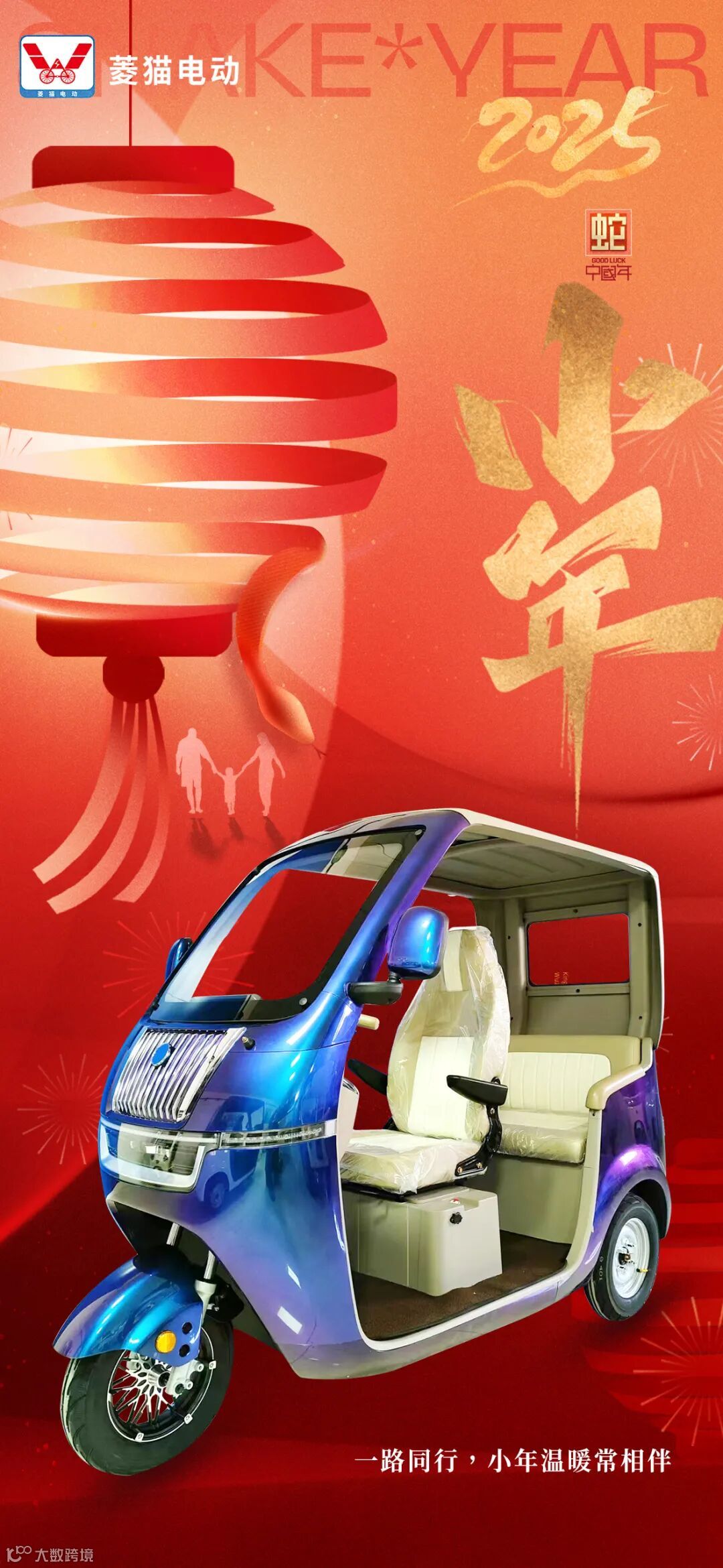 小年至,喜乐盈,2025 蛇年的小年,裹着浓浓的年味,如灵动的精灵般欢快降临。菱猫休闲车,愿化作您小年出行的贴心挚友,为这佳节添一抹别样的欢乐。