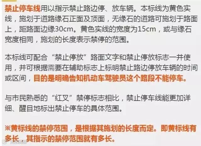 黄色实线代表禁止停车和禁止临时停车,