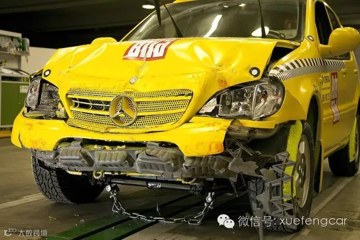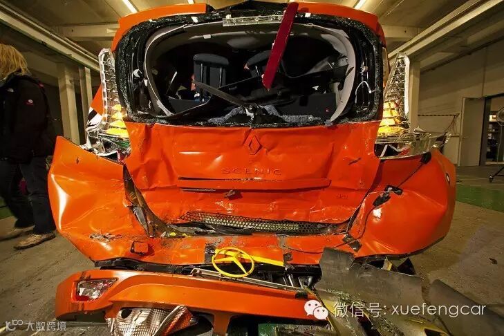 他们在Grand Scenic中每个座位都放了测试假人,在这台车前1米2的地方摆了台旅行轿车,大概是模仿排队停车等红灯的情况。然后,让一台奔驰的ML以40英里的时速(约64公里)冲着Grand Scenic尾部撞过去——结果,后果还是比较严重的。