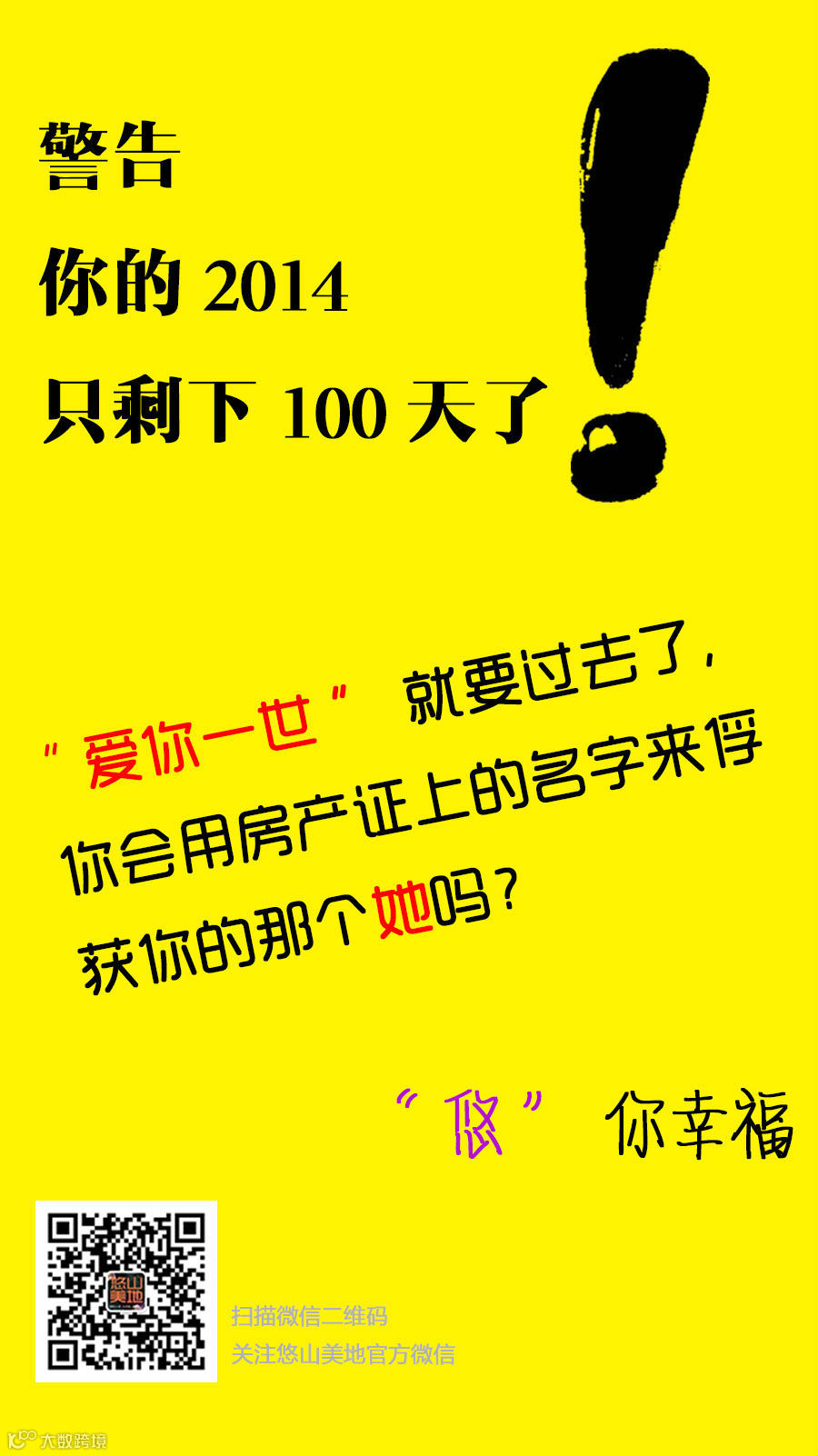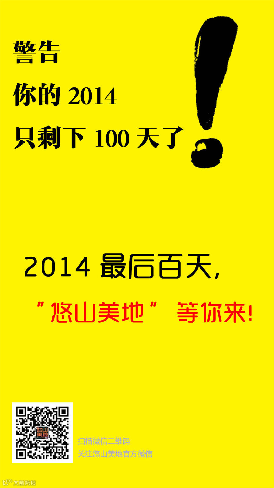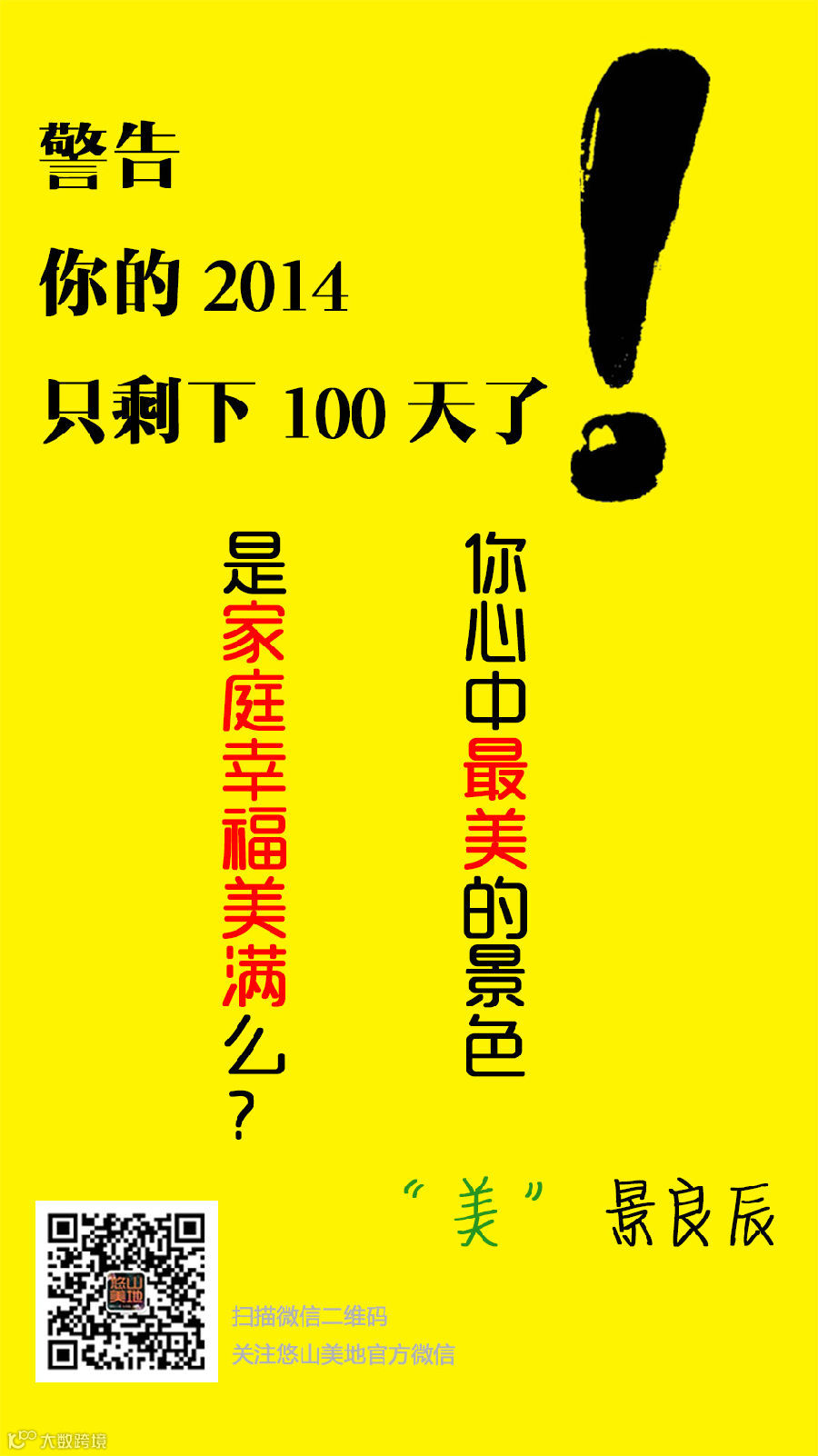 没错!距离今年结束只剩100天!经典著作读了几本?说走就走的旅行做到了吗?身边人有因为你变得更幸福吗?你的父母仍在为你打拼,比你优秀的人还在努力,最好的自己尚未出现,这就是你今天、现在必须奋斗的理由!推自己一把,没有到不了的明天!100天也可以创造奇迹!