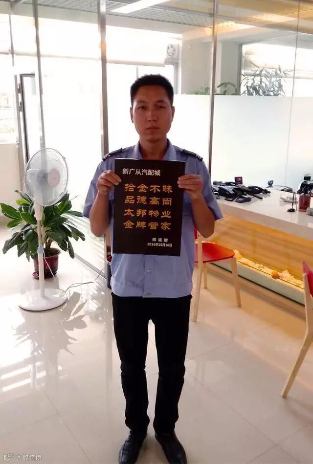 这仿佛是一件不起眼的小事,可能在新广从汽配城时有发生。在这个似乎已经物欲横流的社会,却在新广从汽配城能够感受到“拾金不昧”的美德是如此地可贵。其实我们的社会是充满关爱和信任的,往往举手之劳就能带给别人莫大的帮助,往往心怀正气就能获得人们的赞许和尊重。相信拾金不昧的精神和敬业乐业的工作态度,正是太邦物业公司保安部一直保持士气如虹的原因,也是汽配城为大家提供优质的服务的保证!