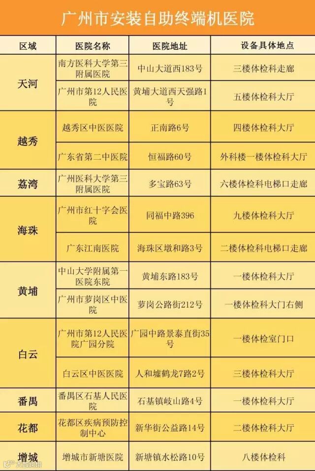 目前,蜀黍已在广州市各区的医院都投放了这台神器,具体如下:
