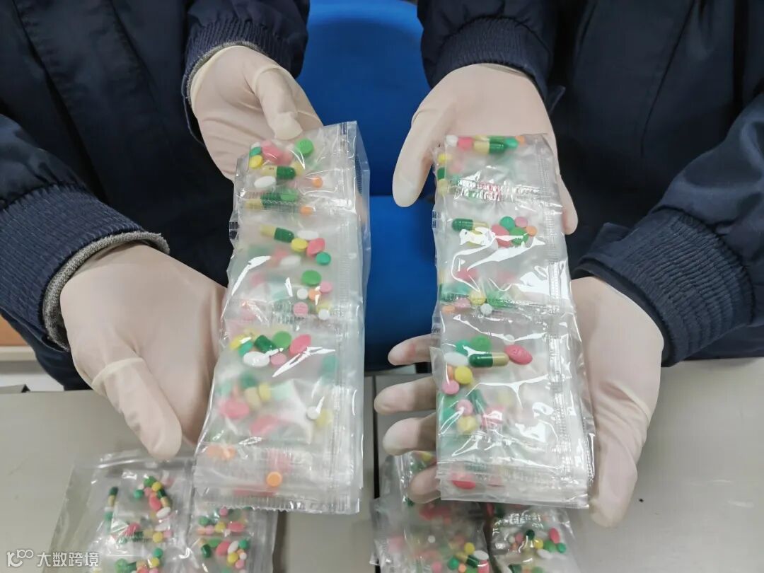 实施机检查验时,发现邮件图像显示异常。经人工开箱彻查,发现不同颜色、不同形状,仅用透明塑料袋简单包装的彩色药品180包,共1620粒。经现场快速检测,发现药片甲基苯丙胺呈阳性。
