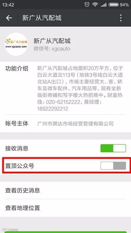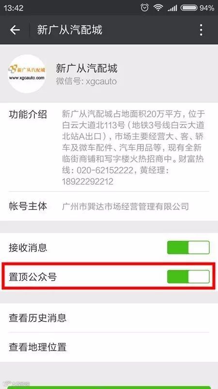 公众号置顶功能,无论是iOS还是Android都可以在公众号主页进行设置,Android版还可以在列表页长按指定号后选择置顶。