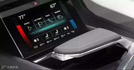 而另两个显示屏则设置在中控台位置,其功能包括导航控制、车载娱乐系统功能的操作及文字输入、车载空调温度控制等,且不设置物理按钮。