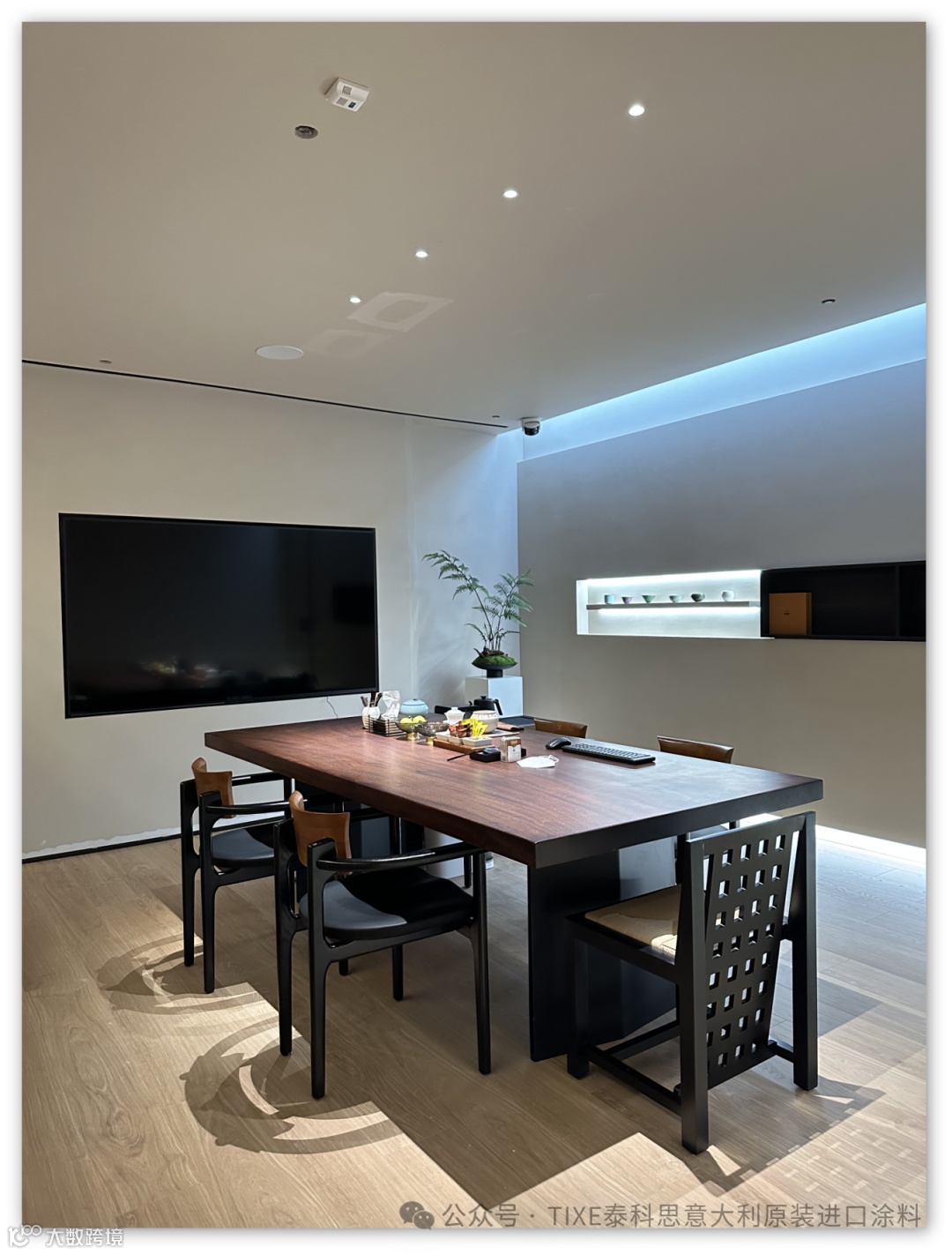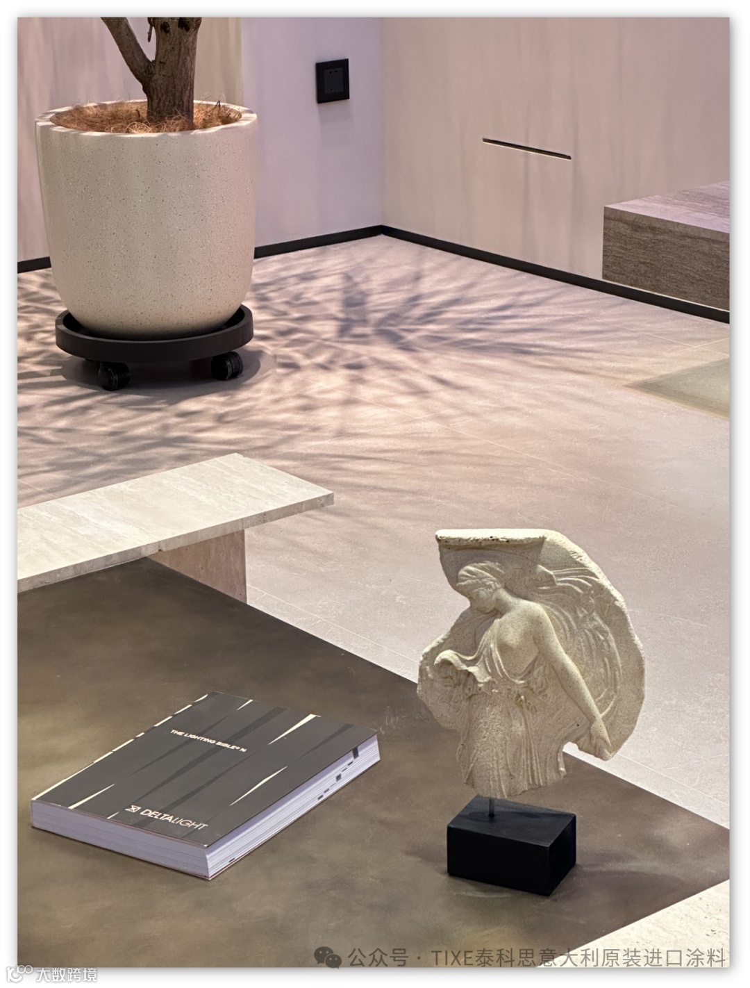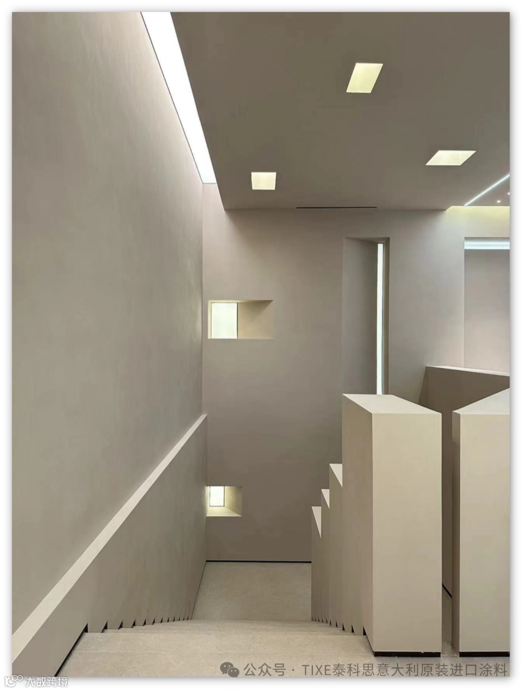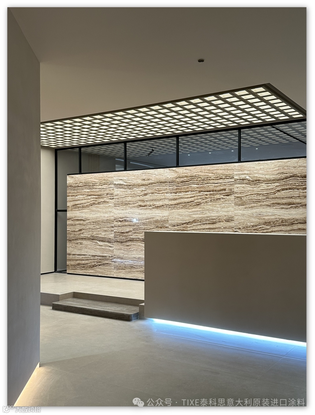 ②材质对比:涂料与家具、装饰品的材质形成了鲜明的对比,让空间的质感更加丰富多样。同时,这种对比也突出了艺术涂料在视觉上的独特魅力。