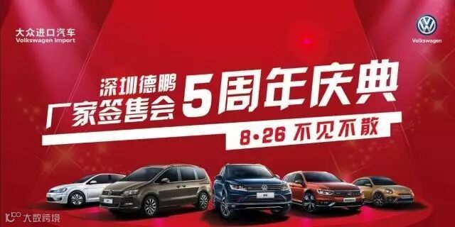 风雨五年,有您相伴!2017年是深圳德鹏进口大众成立的第五年,此期间在广大车主的鼎力支持下,深圳德鹏名扬获誉无数!为此在深圳德鹏进口大众五周年店庆之际将在8月26日开展“5周年庆典,厂家签售会”活动!活动期间更有七重豪礼等着您!!!