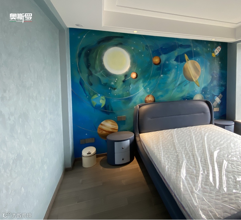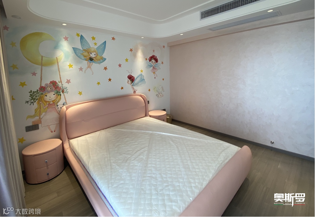 儿童房与主卧房大面积使用珍珠绒,柔和肌理不刺眼、不反光,触感亲肤,给孩子与老人更安心的守护。