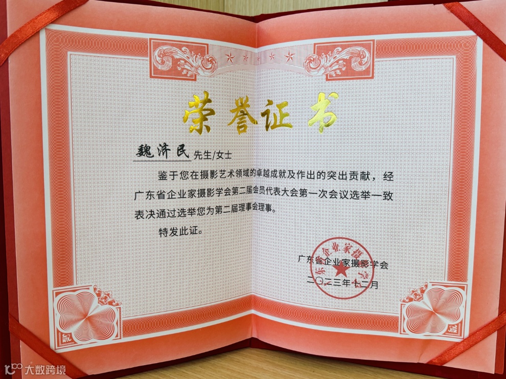 2024年1月,广东省企业家摄影协会为华瑞兴高级合伙人兼管委会主任魏济民律师颁发省企业家摄影协会第二届理事会理事证书。