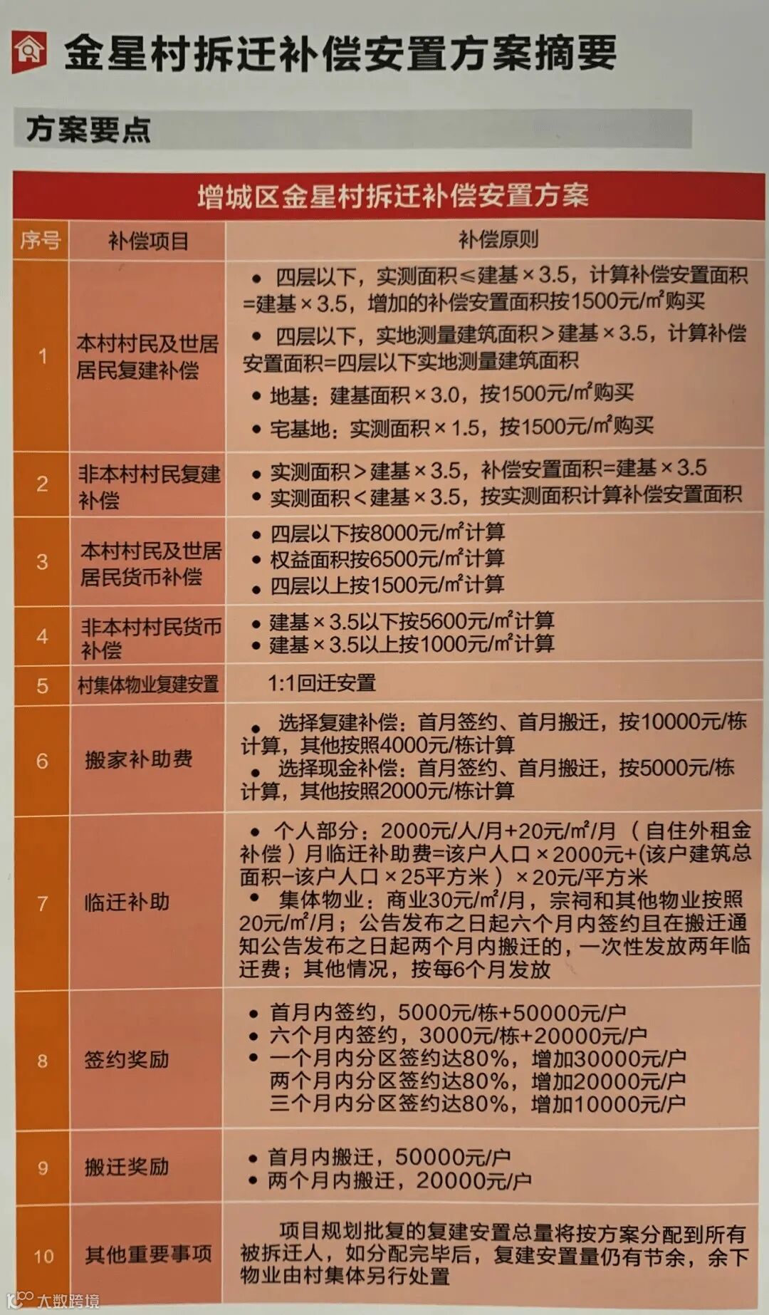 (4)签约奖励:20000元/栋,在通知期限内交房,给予20000元/栋搬迁奖励。
