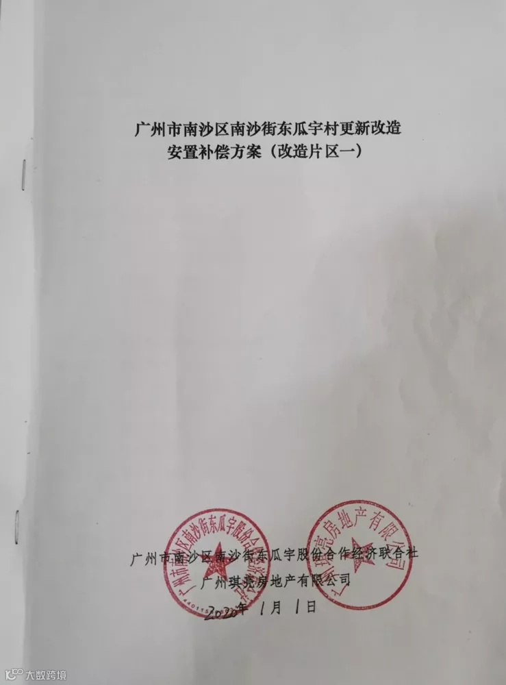 南沙区在今年出了一份文件——《广州市南沙区旧村庄更新改造项目补偿安置标准》,也是区级的首个补偿标准。文件中规定了多项补偿标准,包括面积补偿,权益面积补偿,搬迁费,临迁费等。以这份文件为标准,我们来看看东瓜宇村的补偿标准: