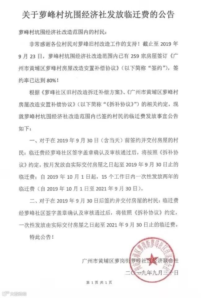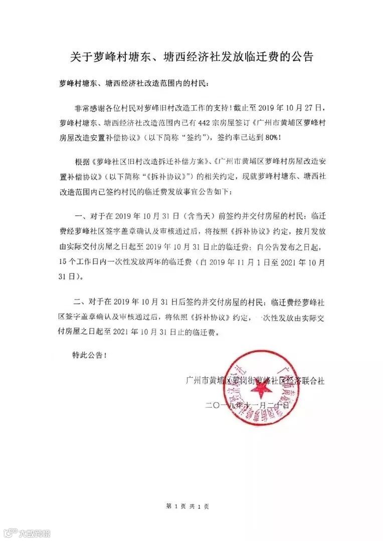 坑围经济社,塘一、塘二经济社,塘东、塘西经济社已启动一次性发放两年临迁费,速度喜人。