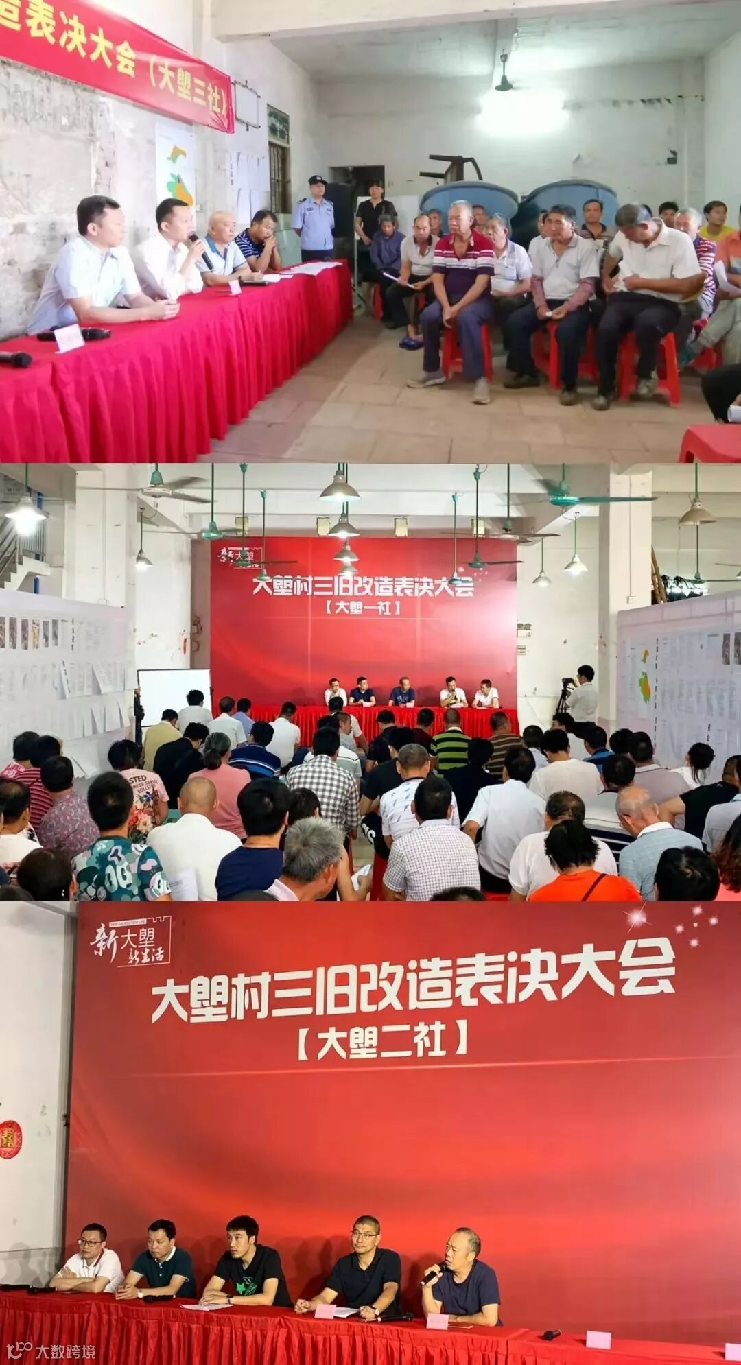 10月17日及10月25日,大塱一、二、三社分别启动了三旧改造表决大会,就大塱村旧村改造实施方案、土地整备及集体物业分配原则等相关内容进行表决。