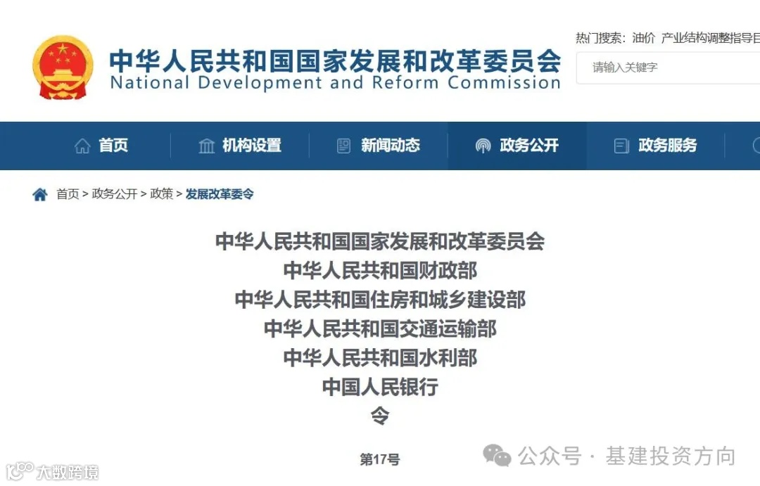 《基础设施和公用事业特许经营管理办法》已经2024年1月31日第8次国家发展改革委委务会议审议通过和财政部、住房城乡建设部、交通运输部、水利部、中国人民银行审签,现予公布,自2024年5月1日起施行。