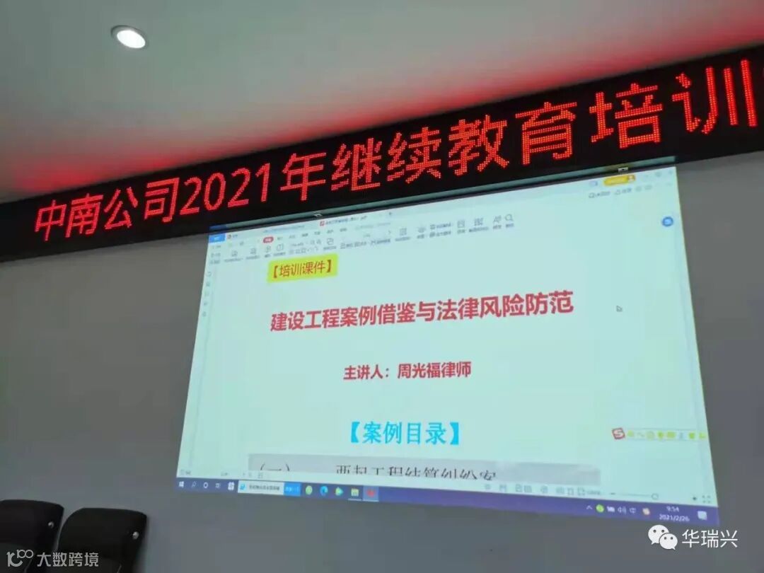2021年2月26日,华瑞兴律师事务所作为广东中南建设有限公司常年法律顾问受邀为广东中南建设有限公司作2021年继续教育培训学习。