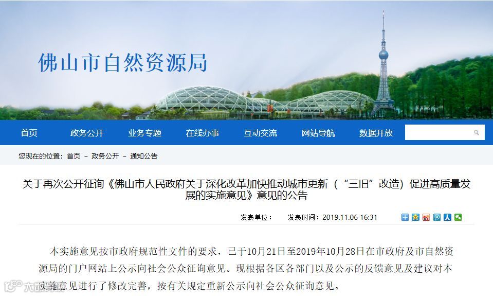 昨天下午,市自然资源局发布《佛山市人民政府关于深化改革加快推动城市更新(“三旧”改造)促进高质量发展的实施意见》意见的公告。
