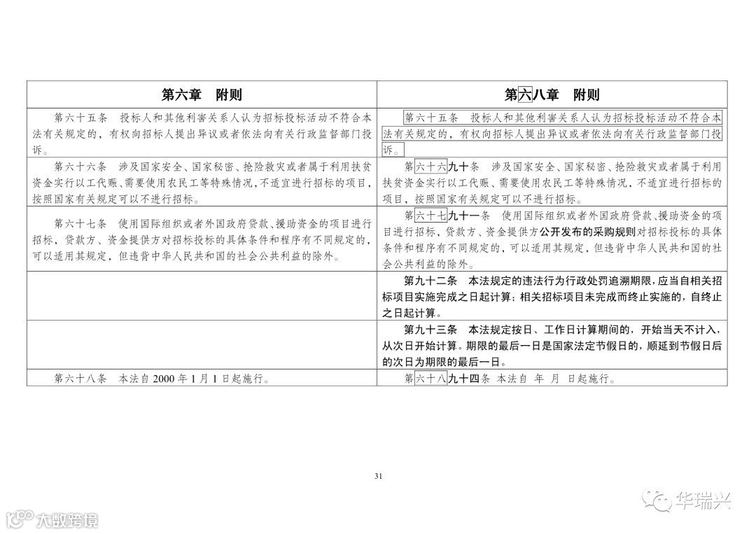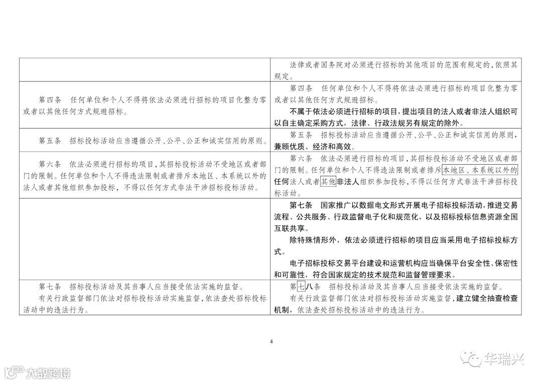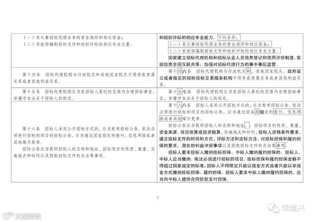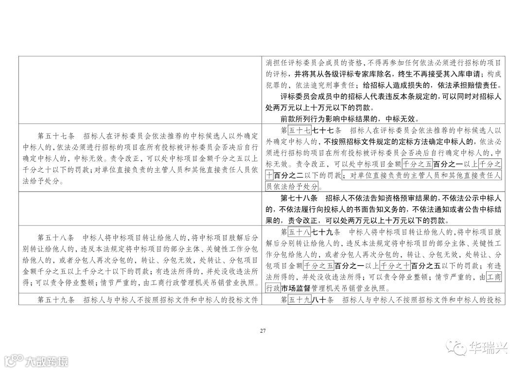 12月3日,国家发改委网站公布《中华人民共和国招标投标法(修订草案公开征求意见稿)》(以下简称《征求意见稿》)。《征求意见稿》共8章,94条,对现行《招标投标法》修改58条,增加28条,删除2条,维持8条不变。《征求意见稿》主要对以下八个方面进行了修订和完善。(一)推进招投标领域简政放权。(二)提高招投标公开透明度和规范化水平。(三)落实招标人自主权。(四)提高招投标效率。(五)解决低质低价中标问题。(六)充分发挥招投标促进高质量发展的政策功能。(七)为招投标实践发展提供法治保障。(八)加强和创新招投标监管。