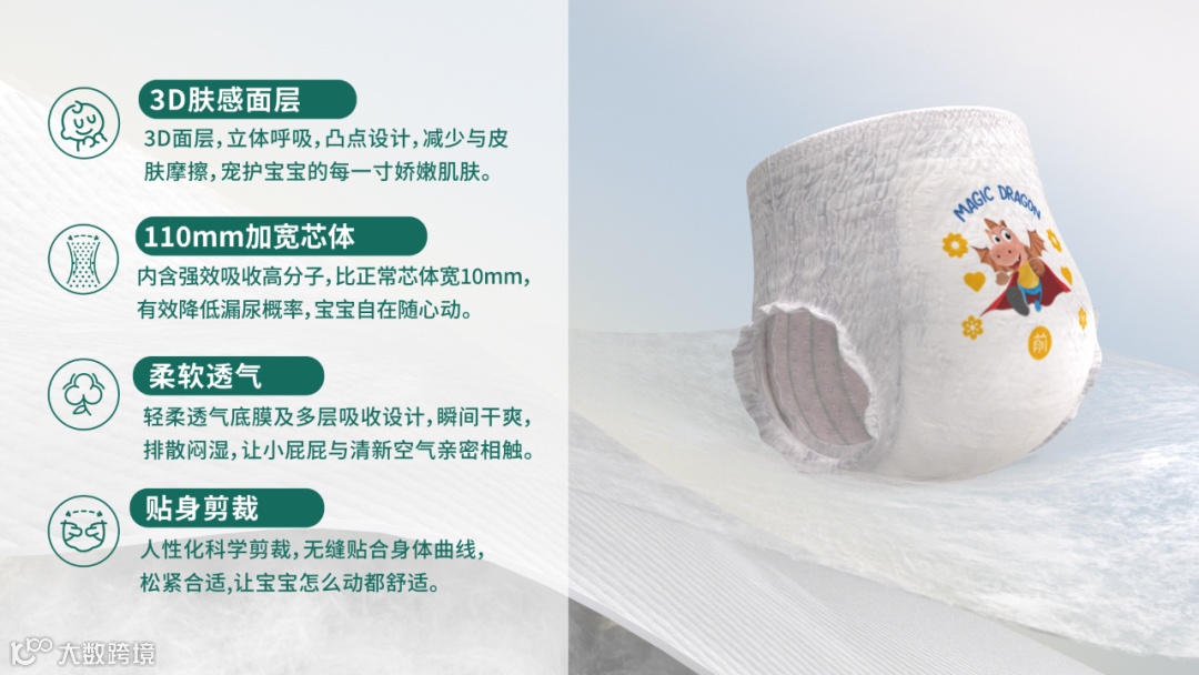 这款纸尿裤设计可可爱爱,小朋友很喜欢,